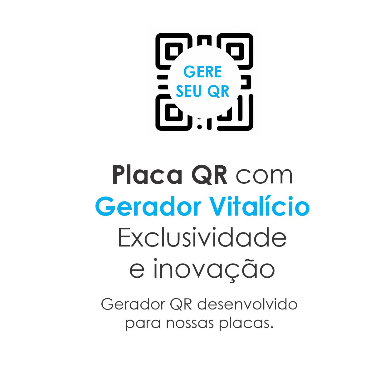 Oferecemos um gerador de QR CODE gratuito e simples pra você utilizar – ele cria o QR já no tamanho da sua placa (instruções irão junto com seu pedido)