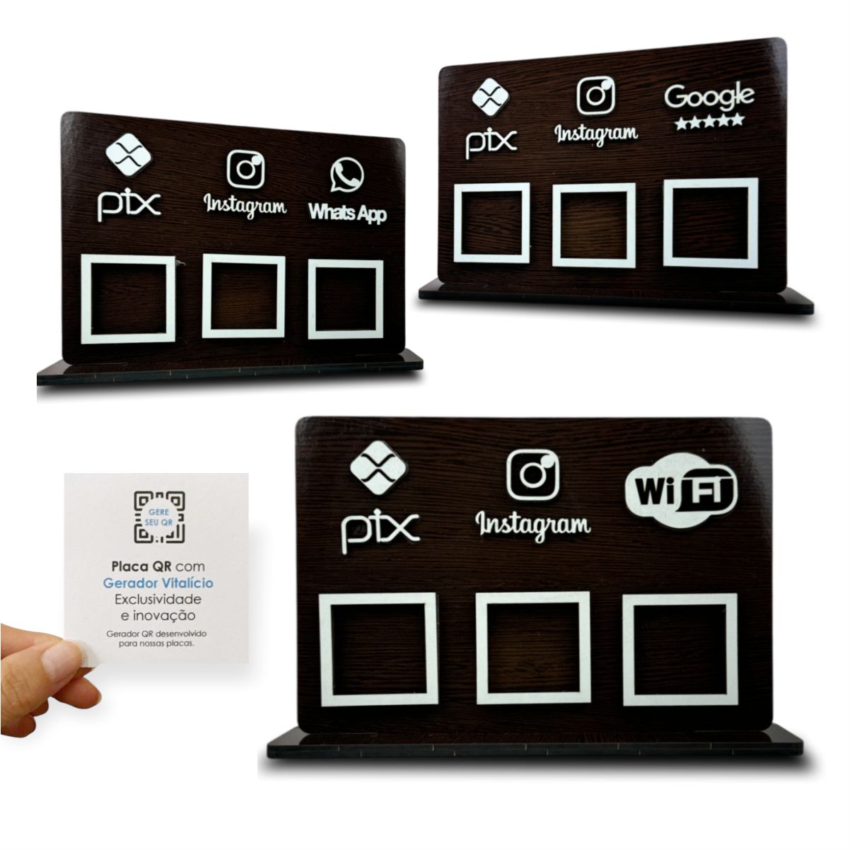 Oferecemos um gerador de QR CODE gratuito e simples pra você utilizar – ele cria o QR já no tamanho da sua placa (instruções irão junto com seu pedido)