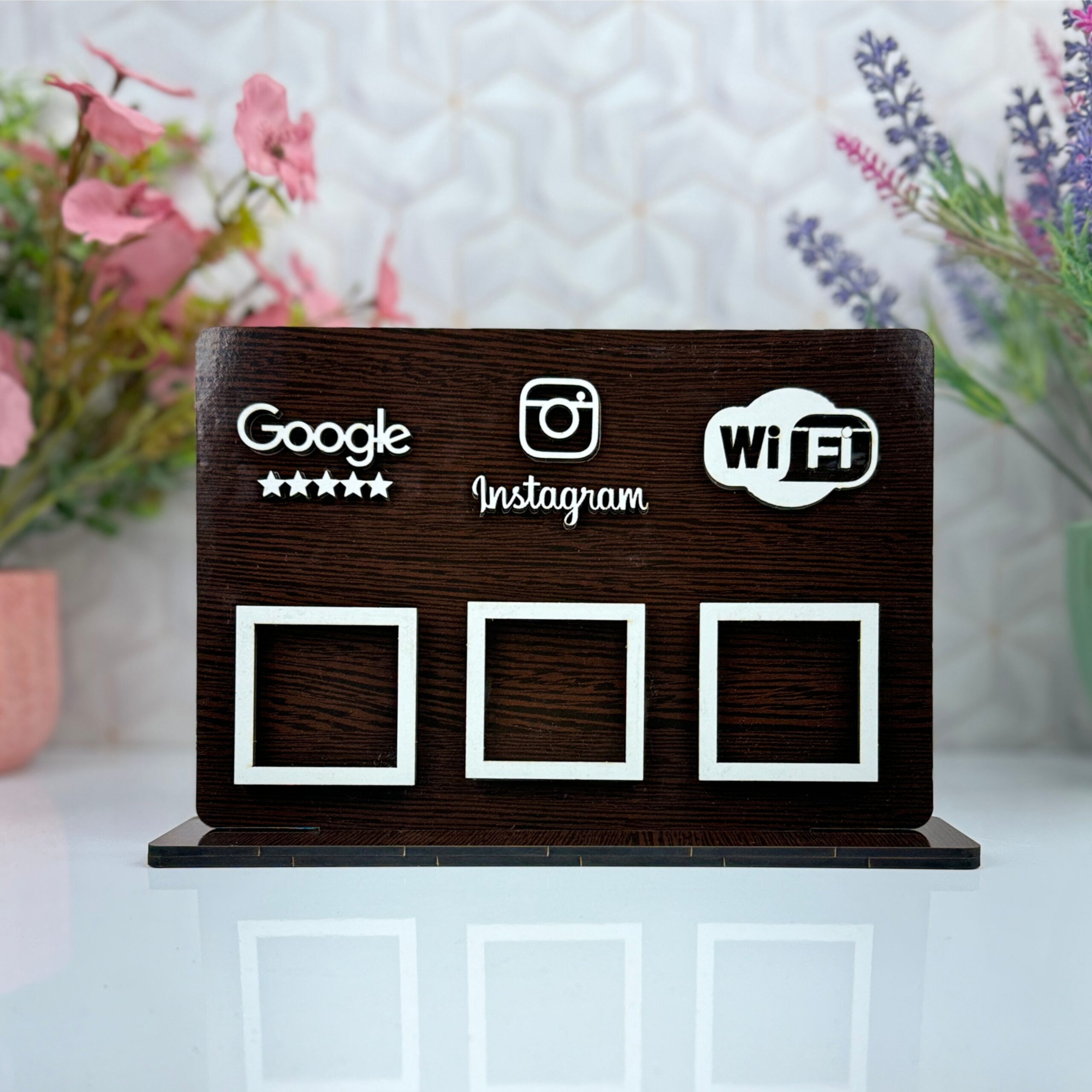 Temos outro anúncio com AIRBNB – TRIPADVISOR – GOOGLE e nas cores AMADEIRADO CLARO E PRETO COM DOURADO